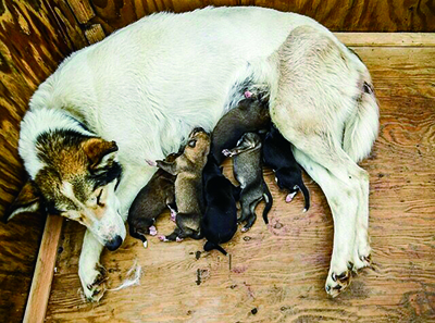 答:母犬分娩结束以后,应该给母犬一些葡萄糖水、牛奶和淡盐水。产后1~2天,应该供应充足的饮水和少量的肉食;3~4天应逐渐增加肉食的量;5~6天除了增加肉食外,每天的进餐次数可以增加到3~4次,并且始终保持饮水清洁。