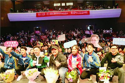 就在大家意犹未尽之时,电影《老师·好》七位主创集体来到台前,同学们齐呼“老师好”,现场气氛瞬间达到高潮。面对同学们的热情,影片监制兼主演于谦则谦虚地表示:“希望能从观众的声音中听到自己的不足,在下一次的表演中尽量改正。同时希望大家支持我们,《老师·好》需要当代年轻观众的发声。”