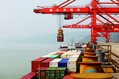 比如,在海关总署支持下,重庆率先开展“关铁通”中哈项目试点,率先实现中欧班列(重庆)常态化运行;重庆实现陆海贸易新通道班列常态化运行,陆海贸易新通道班列、中欧班列(重庆)在果园港首发,长江黄金水道和国际陆海贸易新通道在重庆互通,欧洲、东南亚及全球的货物在重庆交汇。一张承东启西、接南连北、通江达海的内陆开放高地新蓝图,在试验区内愈加清晰。