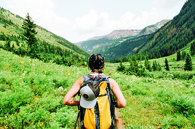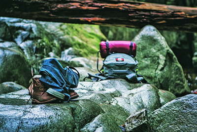 背包和鞋子是徒步者最重要的两大装备。户外徒步中合适的背包很重要,容量、结实程度和防水性是选购时的三大指标。鞋子是否耐磨、防水和透气,直接关系到徒步者在长时间徒步中的安全舒适,因此选购鞋子要舍得投入金钱和精力。长途跋涉易使踝骨受伤,高帮的登山鞋能更好地保护徒步者的踝骨。如果旅程中要涉水,需要准备溯溪鞋。在衣物的准备上,防水透气的冲锋衣裤是必需物品。其他小物件如墨镜、帽子、排汗内衣可视情况选择。