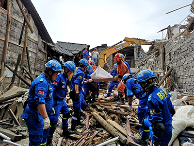 6月17日23时,蓝天救援重庆品牌督导官、重庆市蓝天救援队队长骆明文在四川宜宾市长宁县发生6.0级地震后的两分钟后,立即组织应急协调中心督促各队进行救援备勤,并在当晚凌晨3时45分向震中出发前往救援。