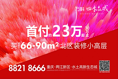 万科·四季花城凝练万科30余载营造积淀,于轨道6号线站点刘家院子旁(在建中),打造建面约66—90㎡轨道装修小高层,社区引入168社区计划、风光定位系统、生态海绵社区,让四季美景入户,自然可亲。集萃万科装修领域先行经验,将紧凑型2房和经济实用型3房合理搭配,专业户型设计、人性化收纳设置、舒适性干湿分区。同时,万科·四季花城项目外侧约20m超宽景观带,社区规划自建约1400㎡社区商业、幼儿园,兼具建筑品质与生活舒适,为水土区域新兴人群提供理想人居之地。现万科·四季花城示范区已华彩绽放,首付约23万起30万止,即可买建面约66—90㎡轨道装修小高层,6月首开热动全城,7月全新楼栋加推在即,诚意登记中,购房热线:023-88218666。