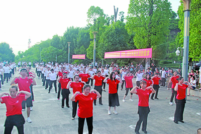 为认真贯彻落实习近平新时代中国特色社会主义思想和习近平总书记关于体育工作重要论述精神,落实全民健身国家战略,倡导文明健康生活方式,扩大“全民健身日”的知晓度和社区居民的参与率,促进全民健身与全民健康深度融合,展示新时代蓬勃发展的全民健身事业,向新中国成立70周年献礼,8月7日,在我市全民健身日到来之际,两江新区礼嘉街道白马社区举办了“全民健身·你我同行”全民健身日活动。当日傍晚,300多名居民欢聚在社区文化活动中心广场,一起跳起精心组织编排的舞蹈,乐享全民健身带来的快乐。在该社区开展“青春社区行”暑期社会实践活动的20多名大学生也参加了本次活动。