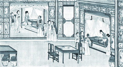 另外,原著《红楼梦》第17、18回对贾政携宝玉、众清客游览大观园及元春省亲的情节只是作了比较简略的描写,但孙温却用了最多的画幅进行描绘。仅第17回的情节,孙温就用了13幅画面表现大观园的秀丽景色。他采用焦点游移的艺术手法,将贾政等人游览大观园的路线详细描绘出来,让读者跟随画家的笔触看到潇湘馆、蘅芜院等大观园景观的真实样子及其在园中的位置。这种感觉与单纯阅读小说完全不同。