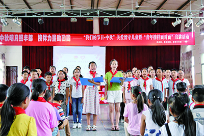 在中秋佳节到来之际,丰都团县委开展了多种形式的庆祝活动。一是以爱心情暖童心。联合县检察院、县关工委等部门,在董家镇中心小学校开展“中秋明月照丰都,榜样力量助团圆”——“我们的节日·中秋”关爱留守儿童暨“青年榜样面对面”宣讲活动,诵读经典诗歌、感悟中秋传统文化、宣传榜样力量,陪伴当地170名留守儿童共度欢乐时光,并为17名留守儿童过生日。