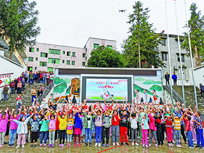 据悉,为庆祝新中国70华诞,9月22日,铜梁青少年宫还组织1200余名师生、家长拍摄快闪《我和我的祖国》,用歌声、龙舞、绘画等形式表达对祖国的祝福和热爱。