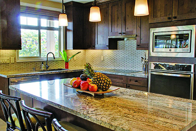 许多小户型空间采用开放式厨房装修是不得已而为之的选择,比如公寓类户型,狭小的空间根本就没有办法。定制一组橱柜安装于进门的一侧,虽然看起来稍显拥挤,但基本能够满足正常的饮食要求。橱柜是厨房中主要的家具,其大小、颜色一定要合适。特别是小户型空间,在定制设计时一定要充分考虑现有空间的实际情况,避免影响整个空间的装饰效果,甚至是降低家居生活的舒适性。