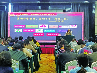 此次培训班安排的内容丰富,分为多个专题,市团校副校长王毅作题为《新中国·新时代·新青年——以新中国70年党的青年工作变迁为视角》的讲座;团市委、市团校的老师分别做了《团的宣传思想文化工作》《青少年发展与权益维护工作》《团的基层建设工作》《青年志愿服务工作》的专题讲座;组织开展了增强学员集体荣誉感的团队风采展示、提升学员默契程度的水杯大接力、强化学员整体意识的真人五子棋大战以及锻炼学员指挥和配合能力的盲人大轰炸等多项素质拓展活动;组织全体学员到“一带一路”国家特色商旅文融合发展教育培训基地——重庆保税港区、果园港现场教学;开展了以“如何加强团的基层建设”为主题的讨论会,并在讨论会上收集意见建议。