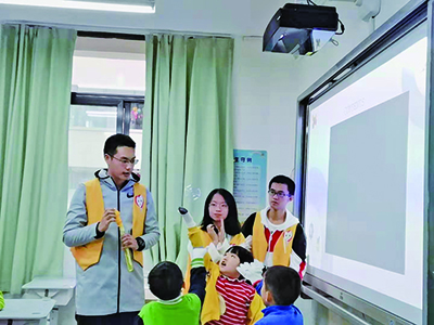 为了更好地传播科学知识、培养创新意识,11月12日西南政法大学政治与公共管理学院青年志愿者协会招募了15位在校大学生走进渝北区长安锦尚小学,为该校一年级小朋友带去了一次科学小课堂。