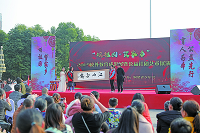 为歌颂祖国、赞美家乡,展示铜梁区校外教育成果,2019年12月7日,共青团铜梁区委、铜梁青少年宫组织学员在铜梁人民公园举行“颂祖国·赞家乡”铜梁区2019校外教育成果暨公益社团艺术展演,吸引了近2000名群众到场观看。
