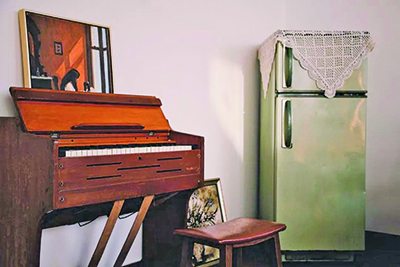 这是一种非常神奇的配搭,屋角放置着的绿色扇叶的旧式电扇仿佛成了一个证据,昭示着这是一误入的上世纪80年代茶会,主角是未到场的阿珍。但阿珍是见不到了,因为兔子小姐说——“这是阿珍的房子,但这里没有阿珍。”
