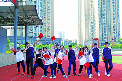 各班分会场的同学,以各种形式对祖国深情表白。26间教室里洋溢着青春的节拍,激荡着浓浓的爱国情怀。家长代表为同学们佩戴了成人礼帽和徽章,赠送了十八岁生日大礼包,包括宪法读本、生涯规划卡片、小台灯等礼物,祝愿孩子们拥有光明美好的未来。家长和学生互赠书信之后,学生们面对国旗庄严宣誓,立志做合格的社会主义建设者和接班人。