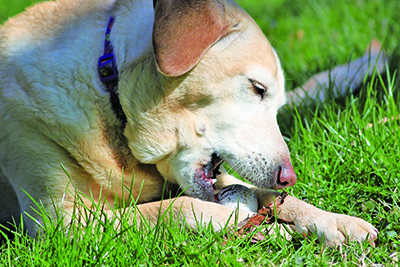 饮食是造成牙垢和牙结石的主要因素。软的或黏的物质附着在牙齿上会形成牙斑,造成牙齿周围的疾病。反之,干性食物和某些特别研制的食物可以帮助消除牙齿上的牙斑。例如,狗咬胶可用于猫和狗。在主人不给它刷牙时,可以让宠物咬一些狗咬胶,这在一定程度上可以保护牙齿。