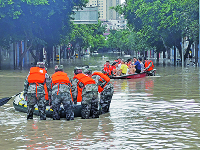 在重庆磁器口古镇,一名七旬老人身患疾病,平日需要在家吸氧治疗,快速上涨的洪水将老人困在家中。市政队员赵江鸿接到消息后,立刻和其他救援人员一起,迅速来到老人家中将其安全转移。类似的情形,在抗洪过程中屡见不鲜。在抗洪一线奋战的,不仅有专业救援人员,也有大量普通群众组成的志愿队。在重庆潼南区,为了确保受灾群众生命安全并在灾后尽快恢复生活生产,当地政府动员该区15个未受灾的乡镇街道干部群众和相关部门工作人员,志愿对7个受灾乡镇街道进行支援。