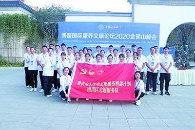 当博鳌国际康养文旅论坛2020年金佛山峰会参会嘉宾们走向峰会主会场的大门,身着白色志愿者服饰的志愿者们挺拔整齐的站姿,亲切的微笑立即映入眼帘。服务于南川区头渡镇人民政府的程晨,就是其中一员。与她一样来自南川区各服务单位的志愿者共计40名,全天候地为与会嘉宾提供接机、引导、问询、一对一接待等服务。他们用最饱满的热情、最专业的服务、最美丽的微笑迎接宾客,亮出了最美的青春志愿名片。