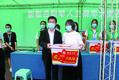 西南大学李旭锋书记为范天兰送上爱心助学礼包