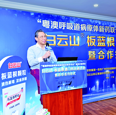 10月13日,“粤澳呼吸道病原体新药联合研究中心”第四次理事会白云山板蓝根澳门转化研讨会暨合作签约仪式在广州举行。会上,中国工程院院士钟南山透露,联合研究团队系统开展了一系列南药抗新型冠状病毒的体外药效筛选,发现白云山复方板蓝根颗粒和口炎清颗粒等显示出体外抑制药效。