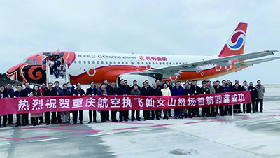 12月18日上午9时48分,重庆航空一架空客320客机平稳降落重庆仙女山机场,标志着该机场正式通航。
