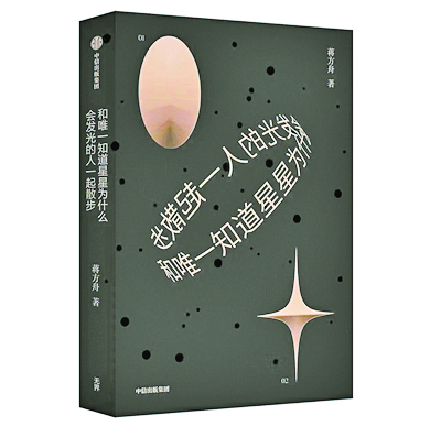 蒋方舟:书的第二篇故事,也就是《和唯一知道星星为什么会发光的人一起散步》,我想写的是一个推想小说。故事也许发生在上世纪二三十年代的东欧小国,讲述女主人公所在的地区经历了瘟疫之后,各个国家开始封锁和隔离,就像星星不再发光一样。小说是在悲观的背景下预想了一个世界。