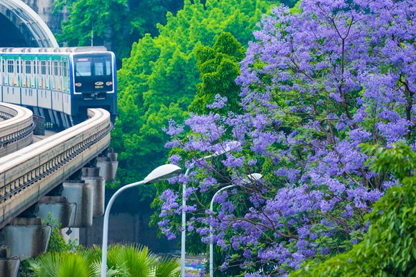 从引进单轨技术,建成中国西部地区首条城市轨道交通,到建成世界上运营里程最长的单轨交通系统,再规划到2035年重庆轨道交通形成“22线一环”……山城市民不仅实现了轨道出行的梦想,轨道交通也成为了这座城市流动的风景线,为市民的生活增加了几分小确幸。