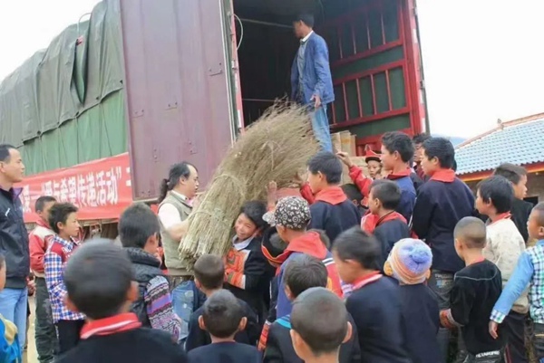 啊谋运送物资给大凉山千哈博爱小学的孩子们。(资料图)受访者供图
