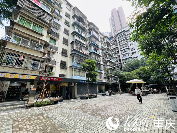 改造后的白马凼社区楼栋间有宽阔的活动空间。人民网 胡虹摄