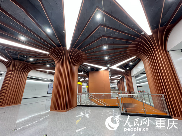 重庆轨道交通4号线二期特色车站龙驿大道站内景。人民网 胡虹摄