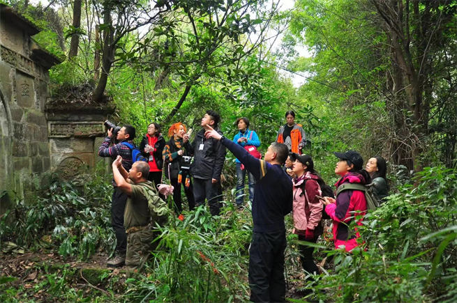 重庆市文物保护志愿者服务总队志愿者寻访缙云山清代古寺。资料图
