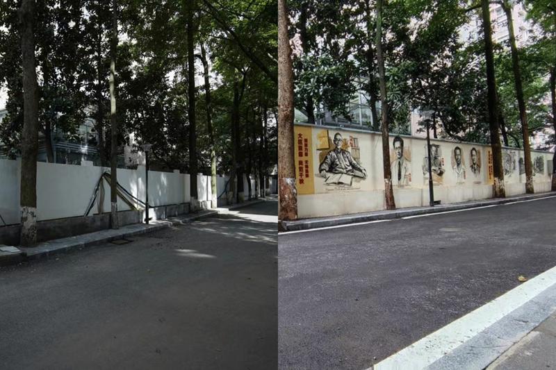 重庆医科大学的前身重庆医学院,是1955年初,400余名上海第一医学院的医疗工作者响应国家号召,迁往重庆建立。改造中,充分挖掘重医“西迁精神”,尊重原有建筑肌理,外部进行修复和清洗,内部进行整治和翻新,延续历史记忆;修缮防空洞、水塔等特色建筑,留住建筑记忆;利用博士公寓楼外围墙打造重医西迁历史文化手绘墙,再现历史文脉,让老一代人有回忆,让年轻一代怀揣更多憧憬。