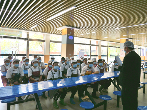 食堂负责人表示,“我们每周一开展培训大会,不断增强从业人员食品安全卫生意识,提高他们的食品安全操作技能,筑牢学校食品安全防线,让师生吃得放心,吃得满意。”