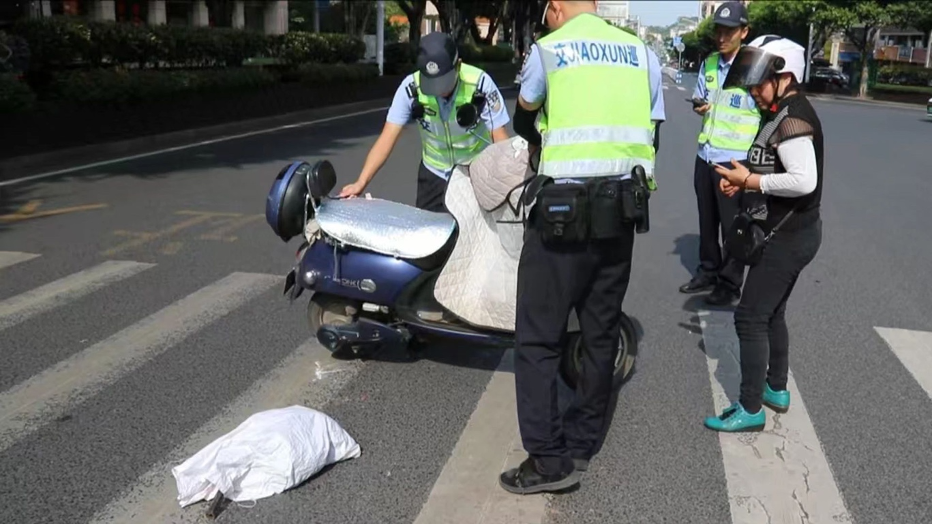 7月中旬,9时许,正值早高峰,铜梁区公安局交巡警支队民警辅警巡逻至铜梁区中兴东路时,发现一辆电动车倒在路中央,影响过往车辆通行,路边的一名女子显得十分无助。经了解,该女子的电动车被另一辆电动车碰倒,对方肇事逃逸,由于车身太重,该女子无法扶起,只好站在一旁等待帮助。民警辅警随即将电动车推到路边安全地带,及时消除交通安全隐患,并联系指挥中心调度事故处理民警赶到现场处置。