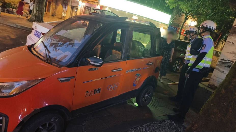 7月21日20时许,铜梁区公安局交巡警支队骁骑队员巡逻至铜梁区龙门街附近时,发现一辆电动四轮车在人行道上踌躇不前,经多次尝试,仍未能驶至路面。骁骑队员询问情况后得知,车主发现路面损坏,担心凸起的部分磕坏底部电动机,因此陷入了尴尬的境地。见此情况,3名骁骑队员快速上前合力将电动车抬下人行道,并帮助车主对车辆的安全性能进行了仔细检查,确保安全后,才让其驶离。