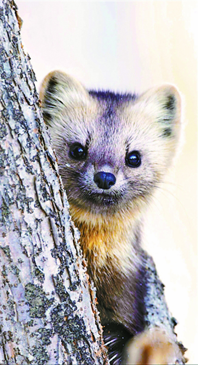 冰天雪地里,毛茸茸的紫貂从树干后钻出来,立起两只前爪,亮晶晶的小眼睛随着头部摆动张望四周。拍下这样呆萌一幕的,是吉林延边64岁的摄影师万兴富。