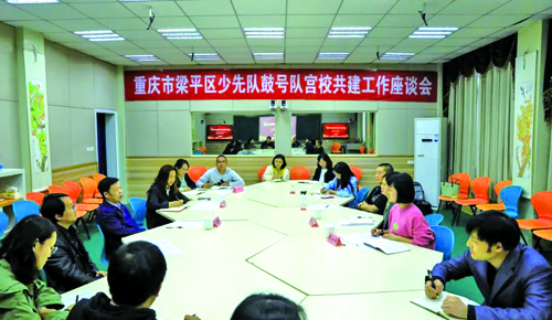 5月18日,梁平区教委主任王建平、团区委书记蒋元涛一行到紫竹小学,对少先队鼓号队“宫校共建”工作进行阶段性成果验收,并就鼓号队师资力量、乐器设备、课程安排、经费保障等方面进行了座谈交流。