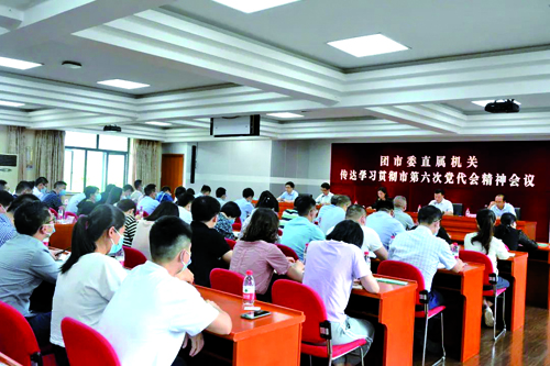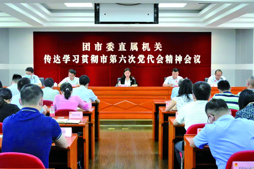 会议要求,要把深入学习宣传贯彻市第六次党代会精神作为当前和今后一个时期的重要政治任务,在深入学习、深入宣传、深入落实上下功夫,迅速兴起学习宣传贯彻的热潮。要全面及时做好会议精神传达,通过党员大会等形式传达到每一名党员干部,切实把思想和行动统一到大会的决策部署上来。要突出“关键”开展学习培训,中心组要发挥示范引领作用,中心组成员要先学一步、深学一层,直属机关各级党组织书记要把学习会议精神与党史学习教育常态化长效化紧密结合起来,市团校要将会议精神纳入各级各类团干部培训内容,切实提升学习实效。要营造浓厚氛围抓好宣传引导,运用新媒体手段开展“青年味”阐释,按照市委工作安排适时组建青年宣讲团,全方位、大力度宣传阐释会议精神。