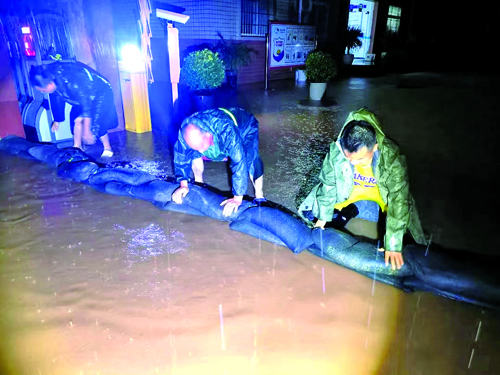 近日,潼南区突降特大暴雨,潼南排水公司第一时间组建青年突击队参与抢险,通过沙袋围堵、拆除路沿石、疏通水篦子等方式迅速排除路面积水