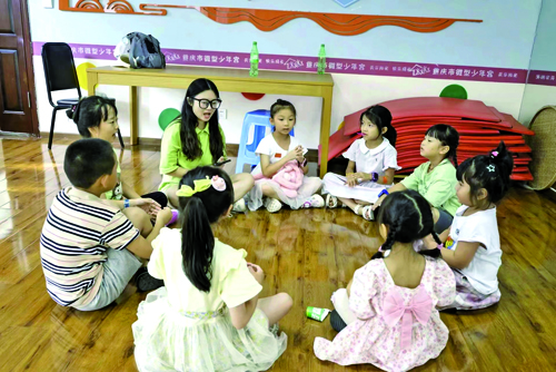 团大足区委组织12355青少年服务台大足站的心理老师、返家乡实习生和青年志愿者们走进棠香街道水峰社区,开展2023年大足区“守护青少年·团团暑期相伴”“莎姐守未”系列活动