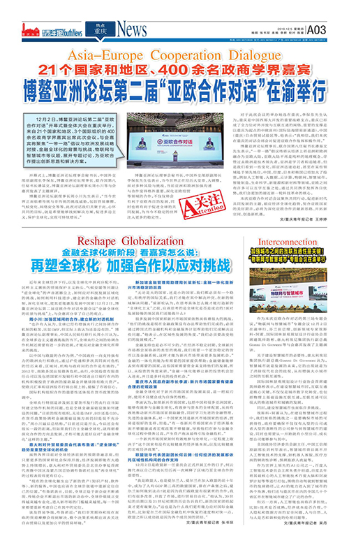 A03-21个国家和地区、400余名政商学界嘉宾 博鳌亚洲论坛第二届“亚欧合作对话”在渝举行