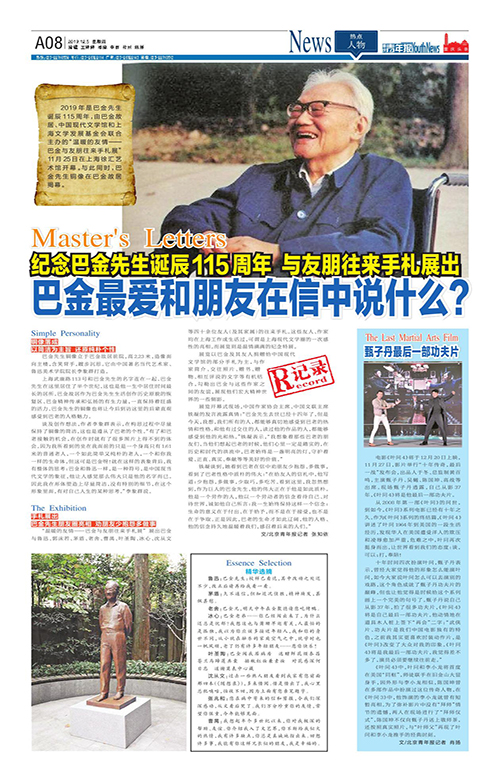A08-纪念巴金先生诞辰115周年 与友朋往来手札展出