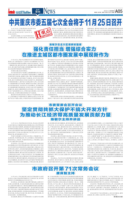A01-中共重庆市委五届七次全会将于11月25日召开