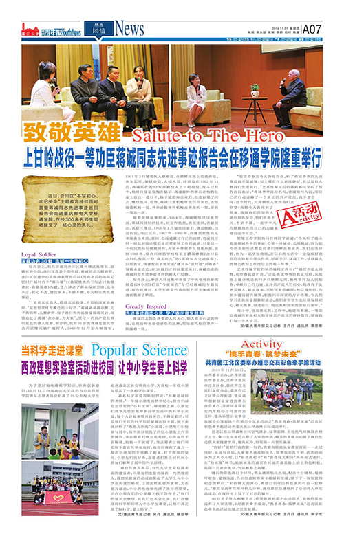 A07-致敬英雄 上甘岭战役一等功臣蒋诚同志先进事迹报告会在移通学院隆重举行