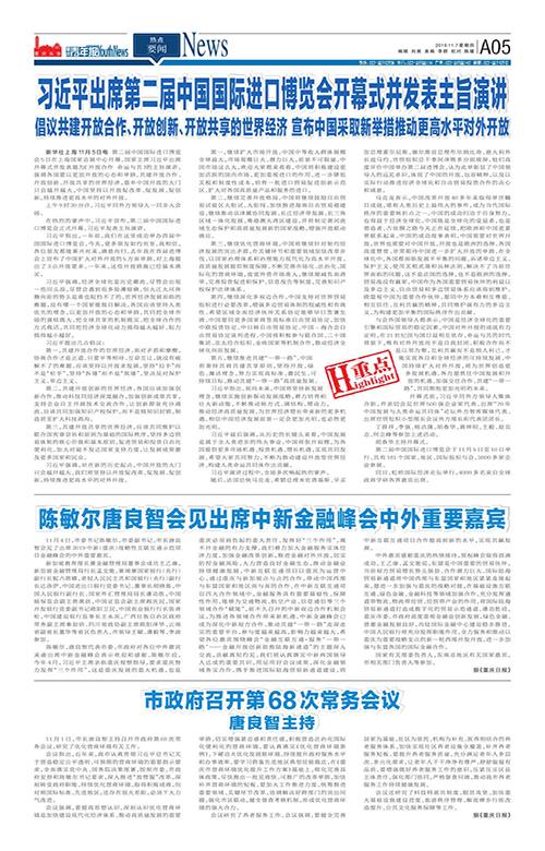 A05-习近平出席第二届中国国际进口博览会开幕式并发表主旨演讲