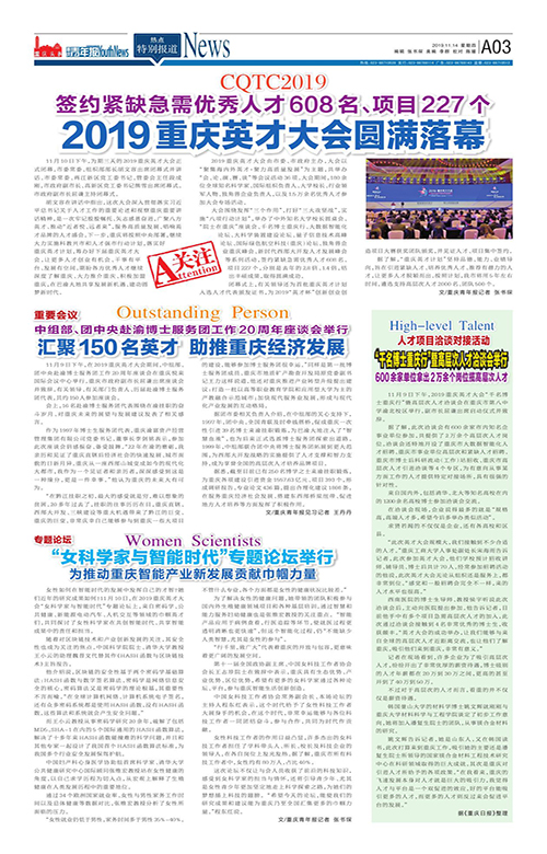A03-签约紧缺急需优秀人才608名、项目227个 2019重庆英才大会圆满落幕