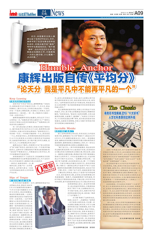 A09-康辉出版自传《平均分》 “论天分 我是平凡中不能再平凡的一个”