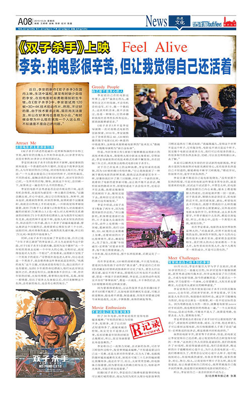 A08-《双子杀手》上映 李安:拍电影很辛苦,但让我觉得自己还活着