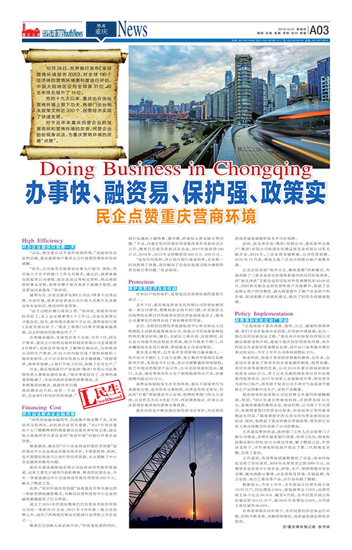 A03-办事快、融资易、保护强、政策实 民企点赞重庆营商环境