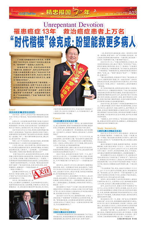 A03-罹患癌症 13年 救治癌症患者上万名 “时代楷模”徐克成:盼望能救更多病人
