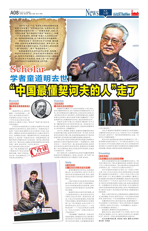 A08-学者童道明去世:“中国最懂契诃夫的人”走了