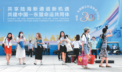 2021年9月11日,在广西南宁国际会展中心,参观者走出第18届中国—东盟博览会展馆。 |