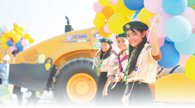 2019年3月,柬埔寨“金边—西哈努克港高速公路”开工建设,当地小学生参加开工仪式庆祝活动。 本报记者 赵益普摄